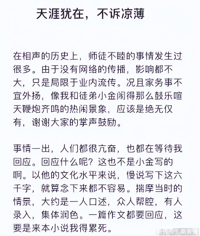 看到这样的“师徒决裂”,让人不禁想起了当年曹云金和郭德纲的决裂现场。